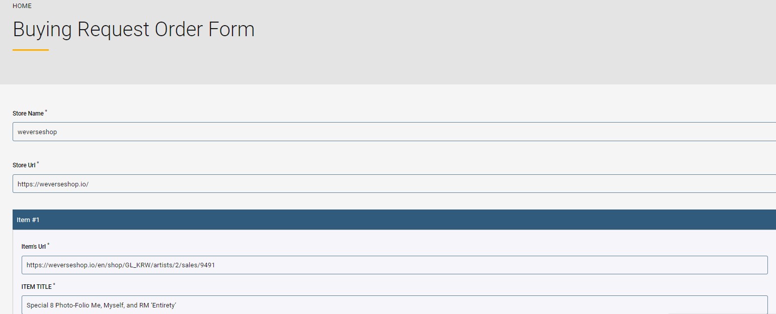 Please fill out the buying request form as follows: we need the product title, store link, quantity, and options. A screenshot of the cart would also be helpful.